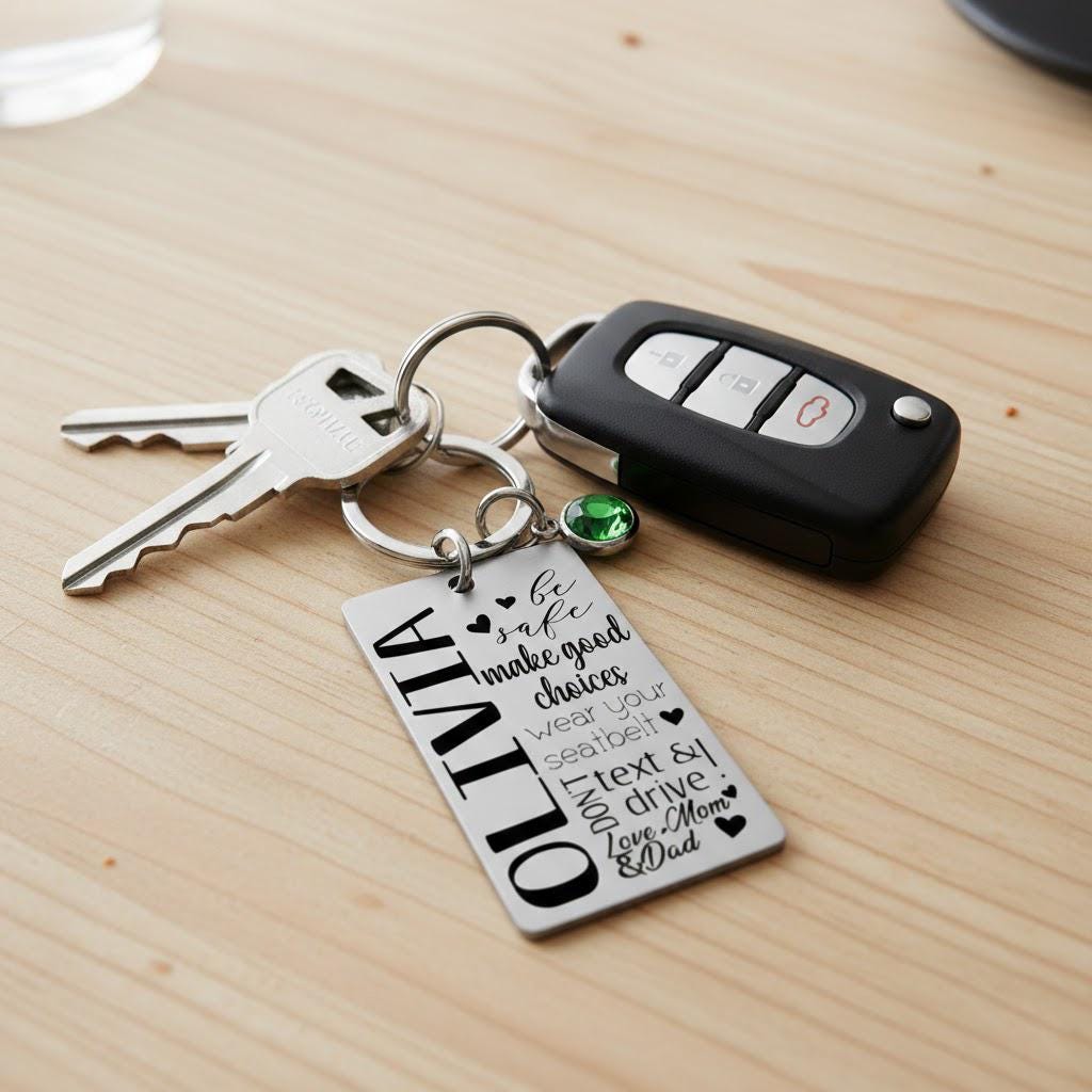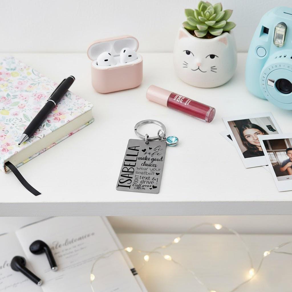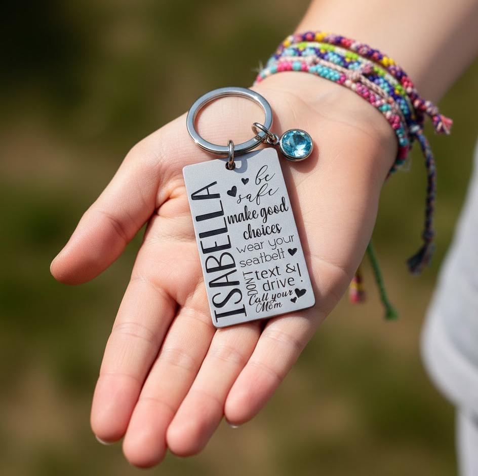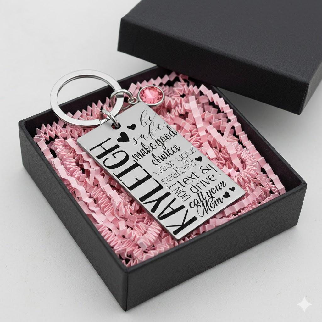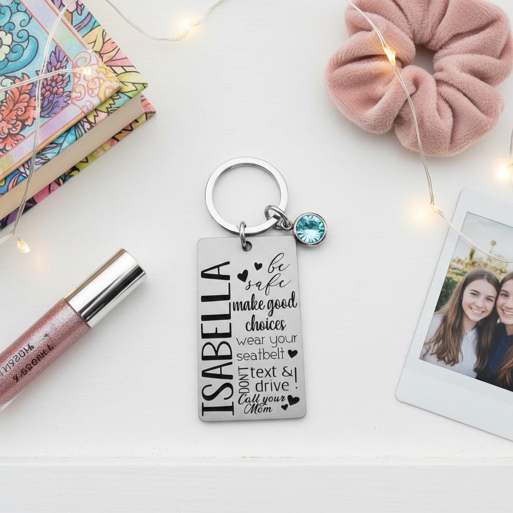 The Sweet 16 Keychain is a great gift for any young woman celebrating her sixteenth birthday. It's also an ideal gift for a daughter, niece, or best friend. The rectangle pendant is specially designed with a motivational quote and features their name and a birthstone crystal for an additional touch of elegance. Add your own custom message on the back to make it even more personalized.
