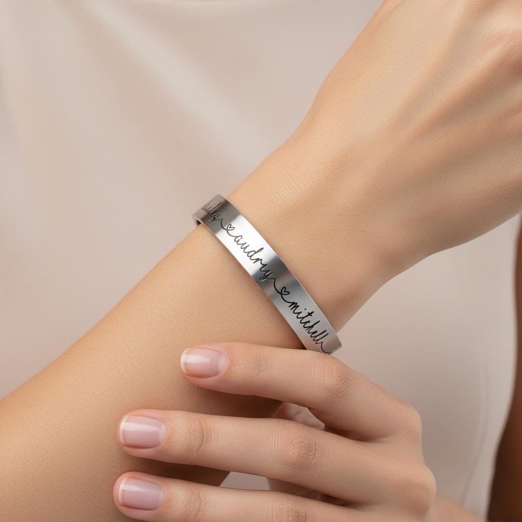 The Personalized Name Bracelet makes the perfect, unique heartfelt gift for any mom, grandma, sister or friend. The personalized bracelet is simple, elegant, and perfect for Mother's Day, birthdays, weddings, and Christmas!