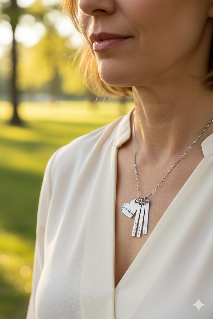Celebrate the special bonds in your life with these personalized necklaces. Crafted from high-quality stainless steel, these necklaces come in three elegant finishes: rose gold, yellow gold, and silver. Each necklace features a delicate 18" chain and customizable charms that can be engraved with the names of your loved ones. Choose up to 6 bar tag charms to create a meaningful piece that honors the unique relationships in your family. Whether you're commemorating a new mom, cherishing a grandmother's love, or celebrating the unbreakable bond between sisters, these necklaces make a heartfelt and timeless gift. With their durable construction and beautiful details, they're sure to become treasured keepsakes for years to come.