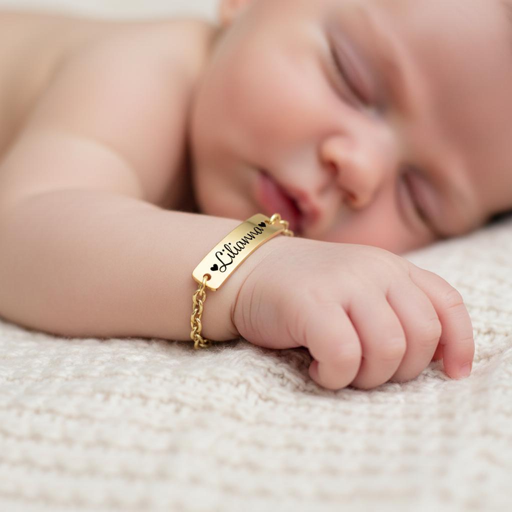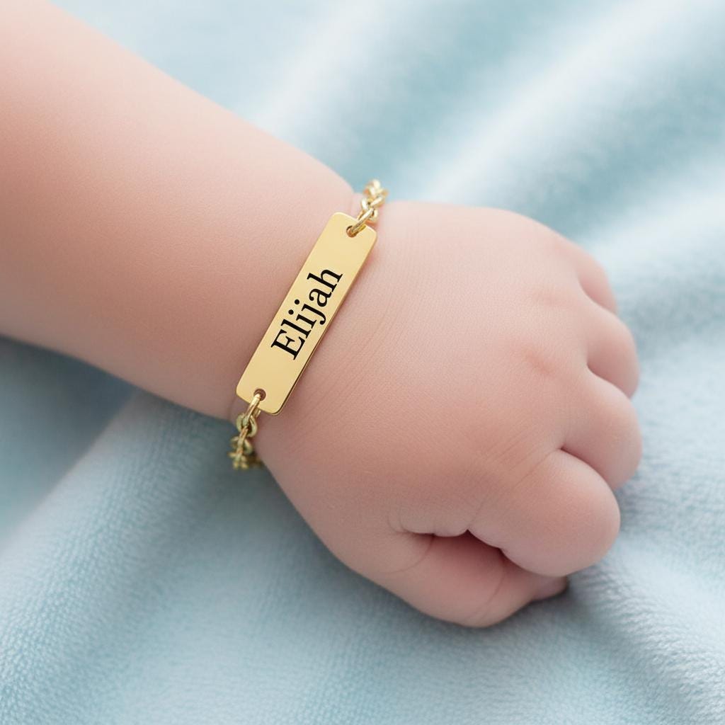 This Personalized Baby Name ID Bracelet is a sweet, meaningful gift for newborns, infants, toddlers, or any special little one. With custom engraving and a durable gold stainless steel finish, it's designed to be both beautiful and made for everyday wear.