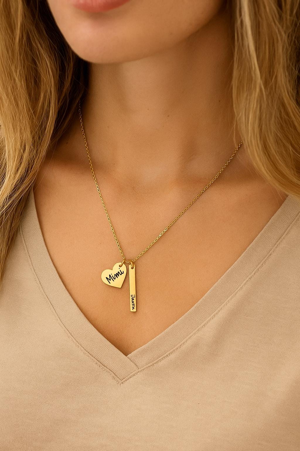 Bring meaning to your jewelry with this custom engraved heart necklace with bar pendant, personalized with names, initials, or special dates. Made from high-quality polished stainless steel in silver, rose gold, or gold, this necklace is hypoallergenic, tarnish-resistant, and designed for everyday wear. A beautiful choice for a personalized gift for her—perfect for birthdays, anniversaries, weddings, Mother’s Day, bridesmaids, or a thoughtful keepsake just for you.