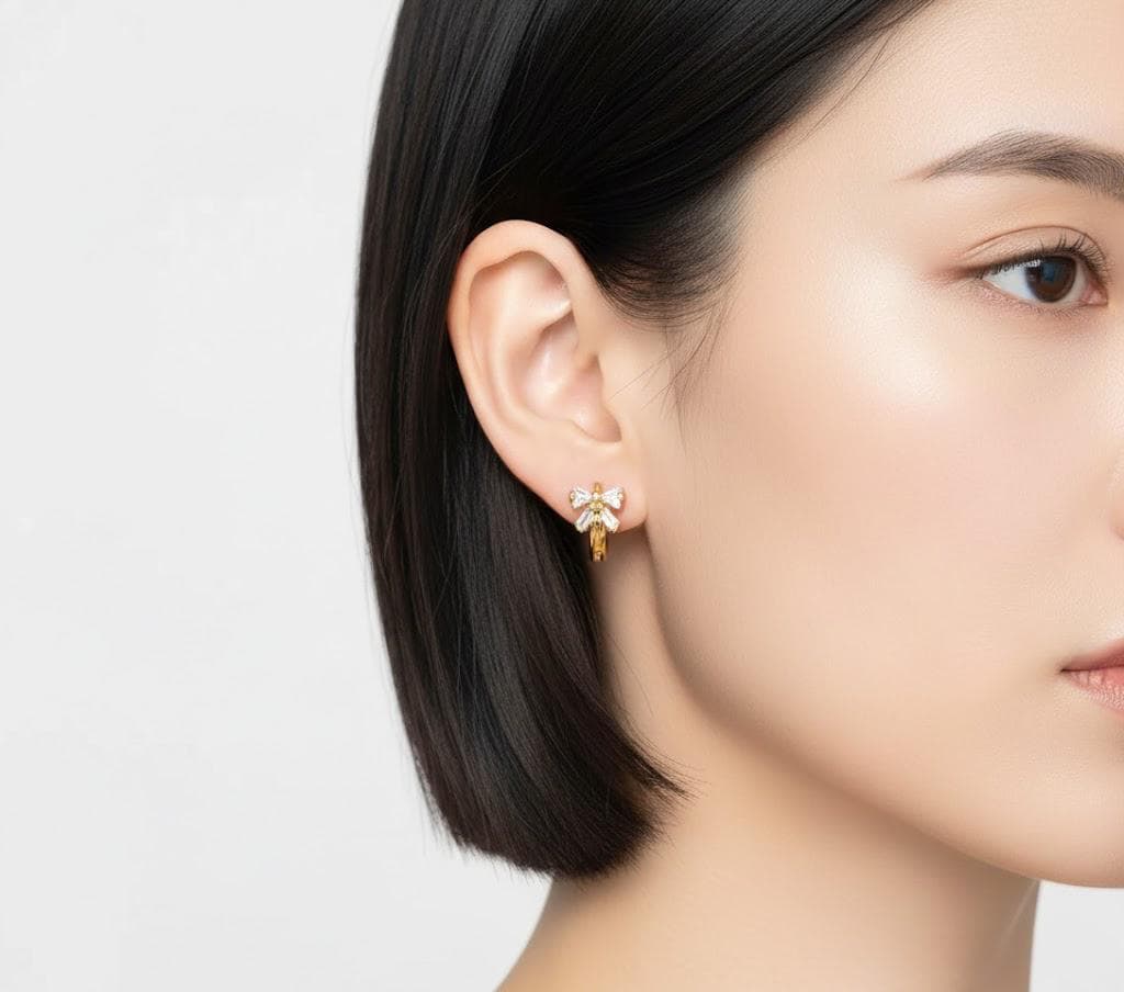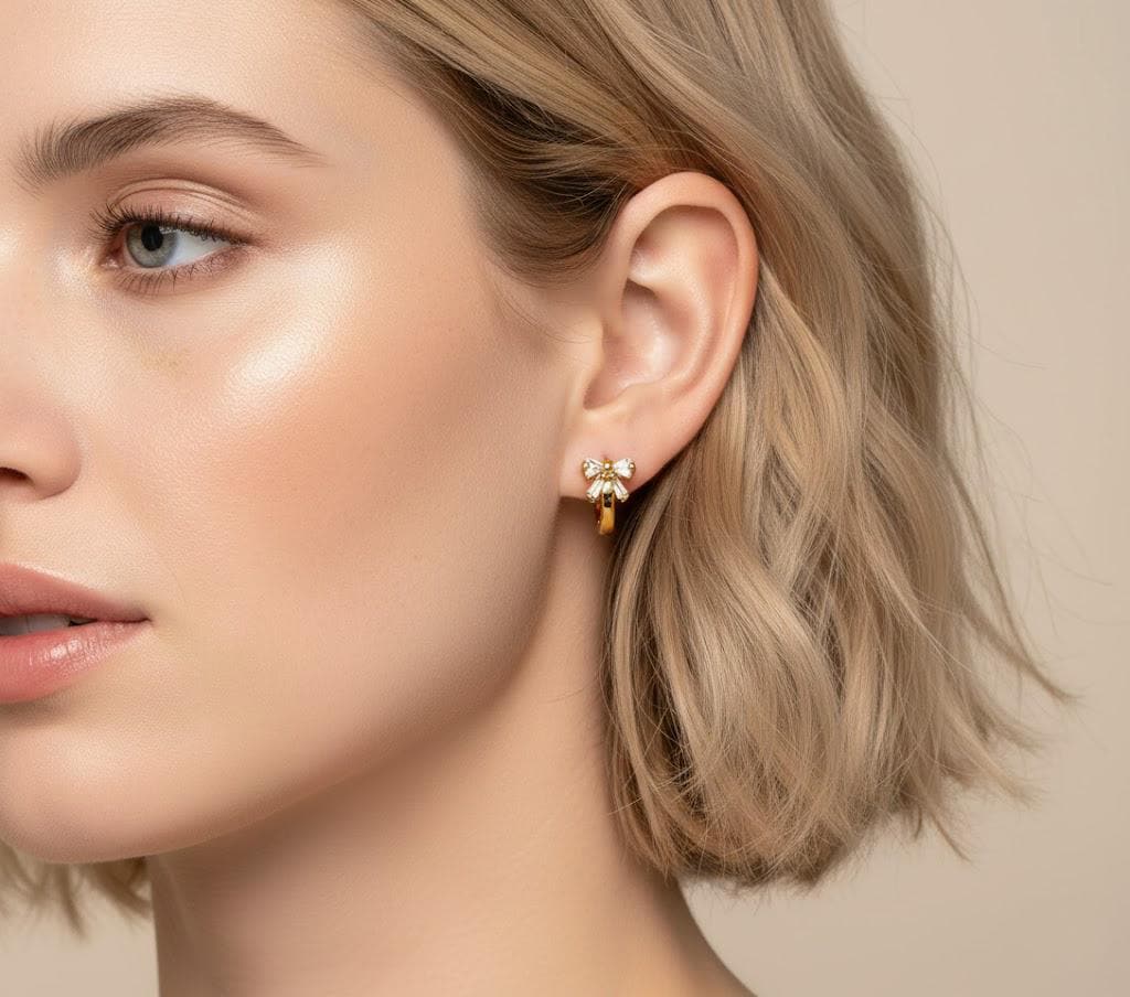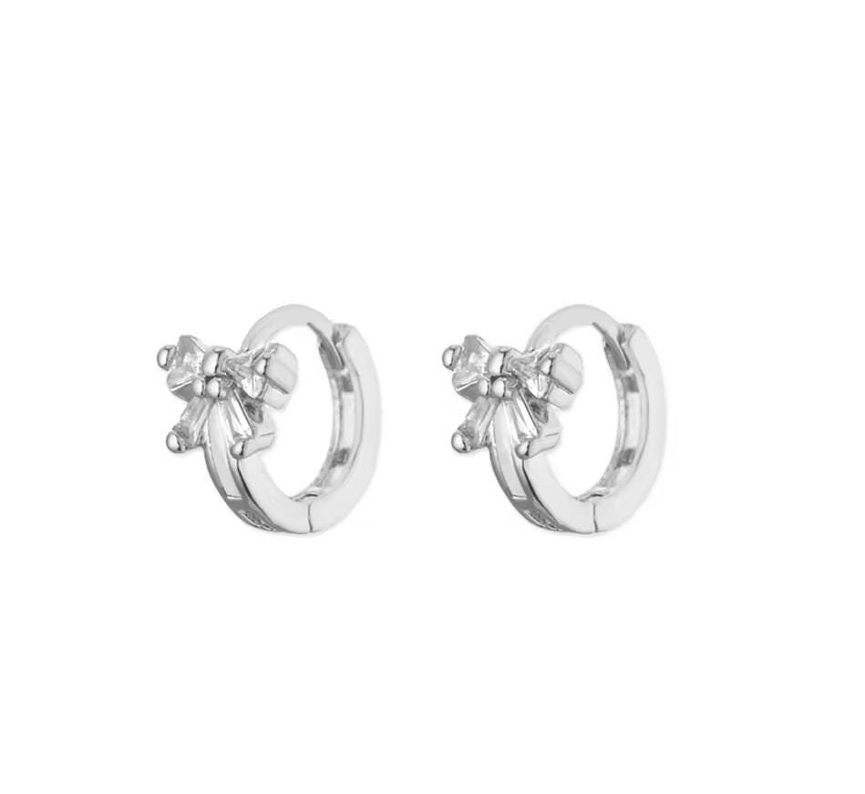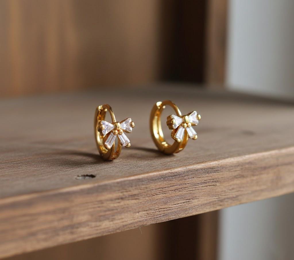 Add a touch of sparkle and sweetness to your everyday look with these elegant bow hoop earrings. Designed with a delicate zircon bow detail and a sleek huggie-style hoop, these earrings strike the perfect balance between feminine charm and modern simplicity.
