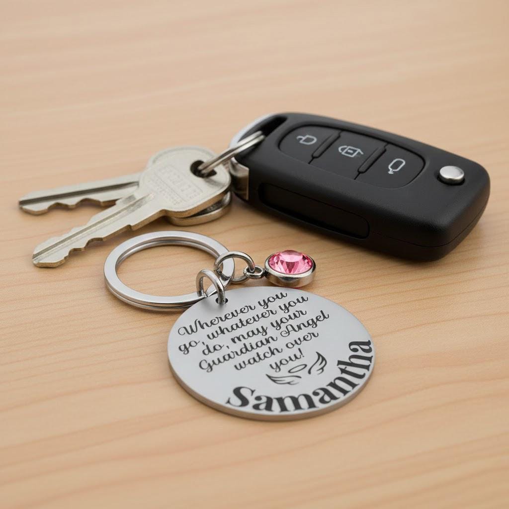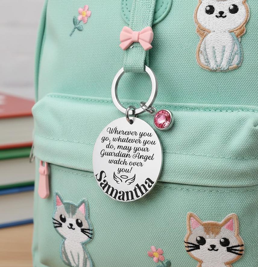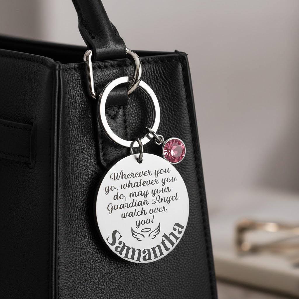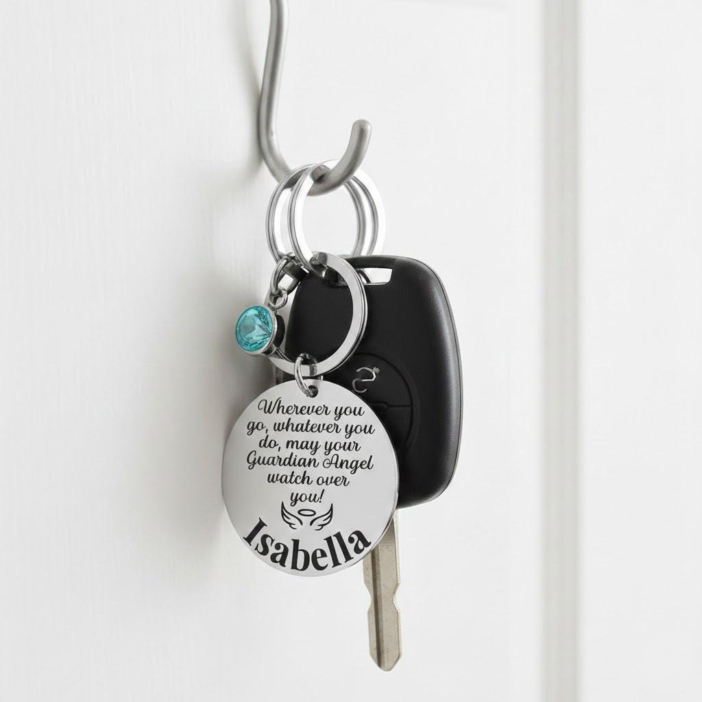 Give a teen or young girl a gift that’s both meaningful and practical. This personalized Guardian Angel keychain is engraved with the message: