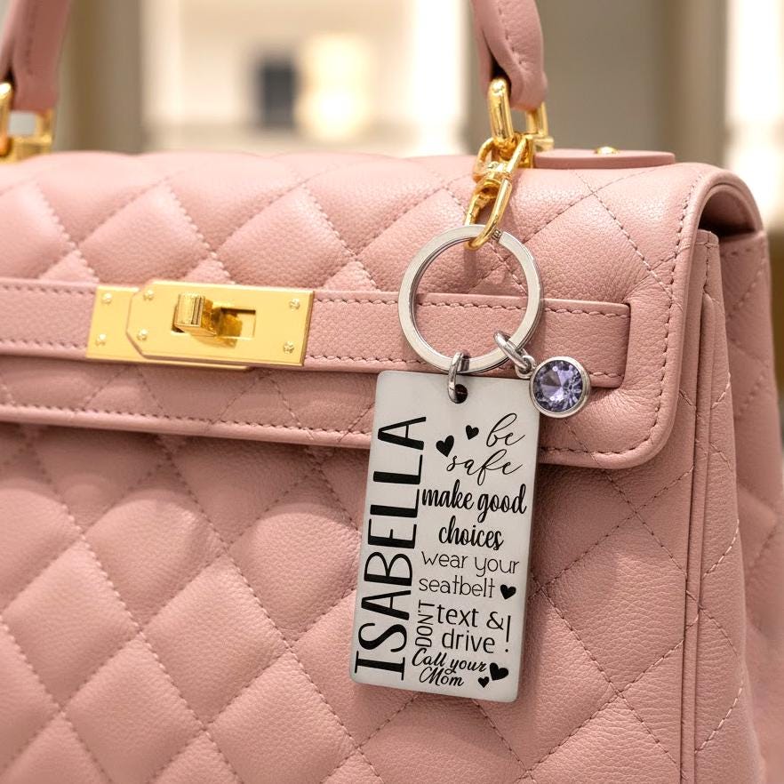 The Sweet 16 Keychain is a great gift for any young woman celebrating her sixteenth birthday. It's also an ideal gift for a daughter, niece, or best friend. The rectangle pendant is specially designed with a motivational quote and features their name and a birthstone crystal for an additional touch of elegance. Add your own custom message on the back to make it even more special.
